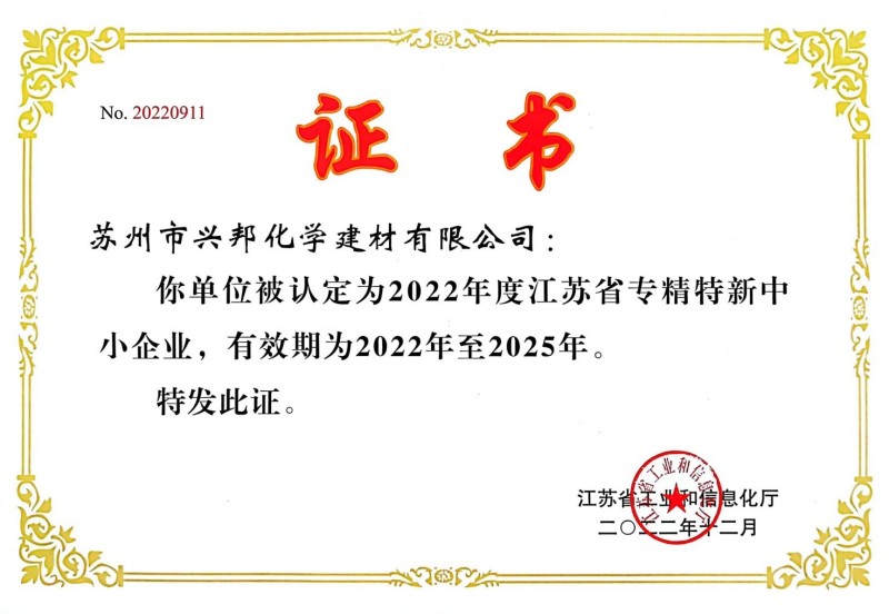 2022年12月,公司被認定為2022年度江蘇省專精特新企業(yè)。